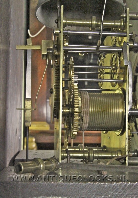 | Belgian longcase clock, signed 'Jacobus Willemore Anvers', ca. 1710, goes for almost 2 months. Height 2,50 mtr. Jacobus Willemore was working in Antwerp and in Mechelen (Malines) from 1704-1711 and came from England. Jacob Willmore was clockmaker and instrumentmaker. The pilars and windingkey have a typical form specific for this maker. In 1706 he made 4 dials for the Sint-Romboutstoren in Mechelen that had a diameter of 13.7 meter. Clocks from this famous maker can be found in: Stedelijk Museum Vander Kelen Leuven Universiteitsbibliotheek Leuven Bibliotheek van de Katholieke Universiteit Leuven. |