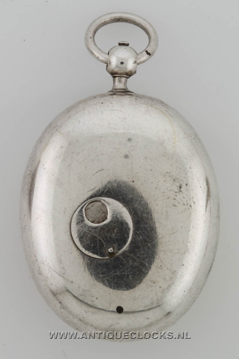 | SOLD | Antique silver puritan pocket watch with date-indication and silver outer case by Jan Janss Bockels, Hage.