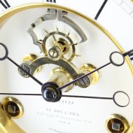 The escapement is signed on the ancre and on the ancre-bridge by the maker 'Auguste Pointaux'. dimensions: 58 x 34 x 20 cm (h x w x d) Maison Le Roy: 1785 Founders Bazile Le Roy (1731-1804) and his son Bazile-Charles Le Roy (1765-1839) stert 'Galerie de Pierre' no. 60 nearby Palais Royal in Paris. 1815 moving to 'Galerie Montpensier, 13-15 Palais Royal, Paris' 1828: Louis-Charles (-1865) become co-owner and the firmante changes to 'Le Roy et Fils' Working for Emperor Napoleon, his mother Prinses Pauine and Jérome Bonaparte. 1829 Royal clockmaker for the Duke of Bourbon and the Duke of Chartres. 1835 Louis-Charles becomes Royal clockmaker for the king and the Duke of Orleans. clockmaker for the navy. 1844 supplier for the Count of Parijs. 1845 The company is sold to employe Georges Casimir Halley des Fontaines (1813-1888) with preservation of the name 'Le Roy & Fils'. 1853 Halley des Fontaines shows interest in the electro-magnetical pendulum. 1855 participation world-exhibition in Parijs. 1856 opening shop in 211 Regent Street, London. 1861 participation exhibition in Londen 1862 participation exhibition in Londen and wins medal. 1866 clockmaker for the Royal Navy, royal clockmaker for Her Majesty the Queen of England, prins of Wales Albert Édouard de Saxe-Cobourg-Gotha (the later Eduard VII), princess Alexandra, king of Belgium Leopold II and the Emperor of Brazil. 1867 participation world-exhibition in Parijs and winning silver medal. 1869 participation world-exhibition in Parijs an winning and winning Certificate of Honor. 1873 participation exhibition in Wenen and winning medal for innovation. 1883 son with same name Georges Casimir Halley des Fontaines succeeds the company. 1888 succession by brother Julles Halley des Fontaines 1889 partnership with Louis Leroy (not related) and company-name change in 'Ancienne Maisson Le Roy & Fils, L. Leroy & Cie Successors'. for 1900 namechange in 'L. Leroy & Cie' Edme Laurent Auguste Pointaux (1809-1884): one of the last important clockmaker from generation as Paul Garnier père, Aimé Jacob, Rozé, Henri Robert père, Wagner and apprentice of Thouverez, trained in the workshops of Lépine, Robin and Lepaute. Starts working in 1830 for Le Roy & Fils and never leaves. Inventor of an 'échappement à coup perdu' in ca. 1853 with curved robin pallets. |